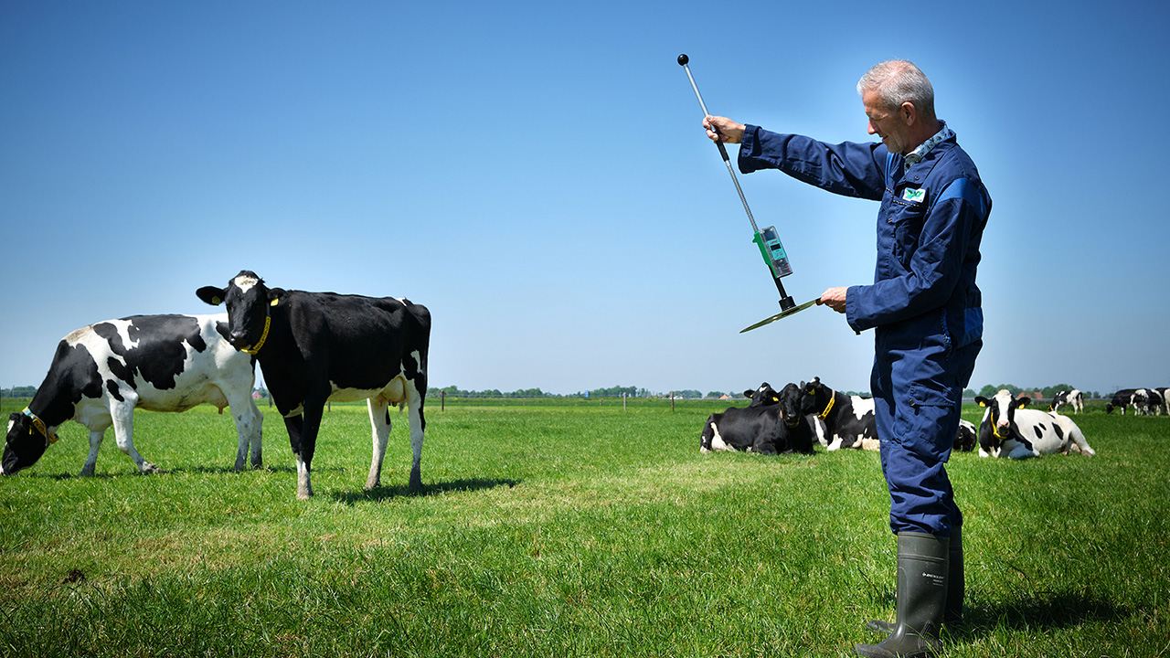 Bij melkvee is gras een belangrijke basis van het rantsoen. Graslandmanagement is daarbij bepalend voor de kwaliteit van het verse en ingekuilde gras. Vanuit eerdere onderzoeken is bekend dat de verteerbaarheid en het eiwitgehalte bepalende factoren zijn voor methaan- en ammoniakemissies. Als vuistregel voor de relatie tussen ruw eiwit en ammoniakreductie kun je hanteren: 1 gram ruw eiwit per kg droge stof minder in het rantsoen betekent 1% minder ammoniakuitstoot.