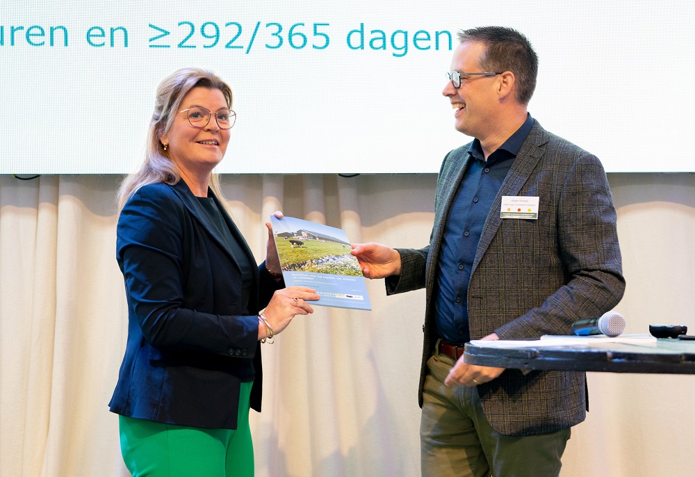 Foto: Albert Winkel overhandigd onderzoeksrapport aan Minister voor Natuur en Stikstof Christianne van der Wal, 2024