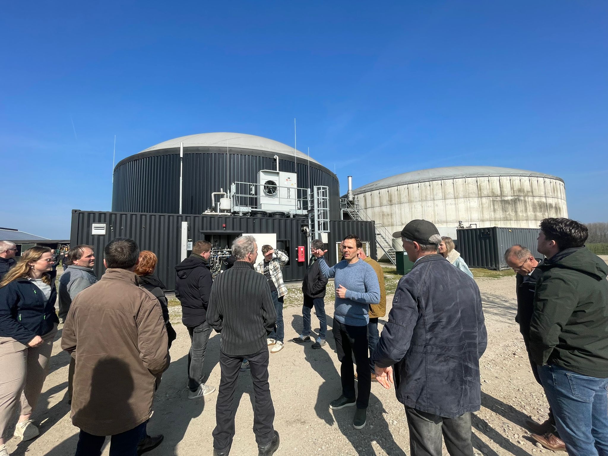 Zo'n dertig deelnemers begonnen de dag met een bezoek aan Boerderij De Boterpot, het bedrijf van Johan en Willem Loonen in Merselo. Ze hebben vijfhonderd melkkoeien en bijbehorend jongvee en grasland. De focus van hun melkveeactiviteiten ligt op innovatie. Zo hebben de ondernemers een monomestvergister voor de productie van groen gas, zonnepanelen, een grote accu en een koudebuffertank om melk te koelen. De warmte die bij het koelproces vrijkomt, gebruiken ze om de monomestvergister te verwarmen. De broers wonnen begin dit jaar de publieksprijs bij Venrayse Ondernemersprijzen.