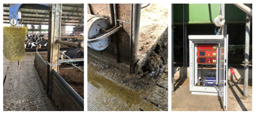 De linker en middelste foto’s laten zien hoe de meetleidingen onder de vloer gaan. De foto rechts is een voorbeeld van de apparatuur die buiten in een geïsoleerde kast staat.