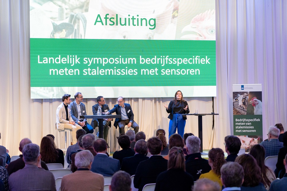 Tijdens het symposium gaf het ministerie van LNV toelichting over de landelijke aanpak voor het bedrijfsspecifiek meten van stalemissies. Daarnaast vond er een boeiende paneldiscussie plaats met vertegenwoordigers van de overheid, de sector en de onafhankelijke voorzitter van het Regieorgaan 'Versnellen innovatie emissiereductie duurzame veehouderij', waarbij het belang van continu meten van stalemissies en doelvoorschriften werd benadrukt.